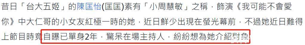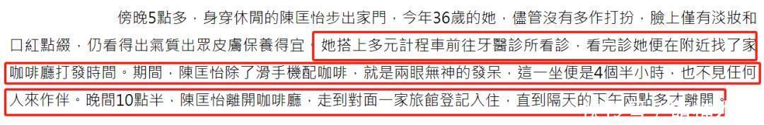 一个东说念主看病、吃饭、逛街、过夜……陈匡怡就这么在外面渡过了两天,台媒亦然很意思意思起因,特别去了解了她的厚谊情状,得知陈匡怡因为厚谊不顺仍是慷慨不婚了。