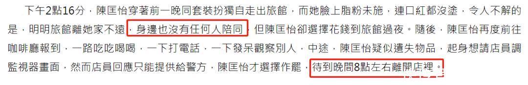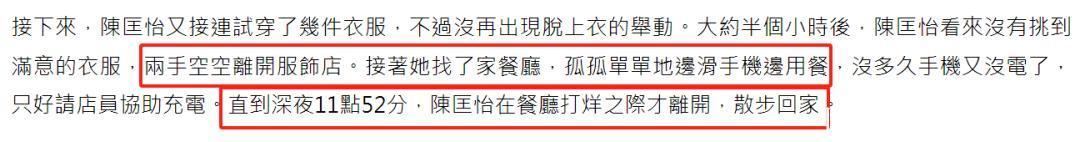 亦然不知说念台媒出于何种心态,他们专门跟拍了陈匡怡一天的踪影,发现她孤身一东说念主状态欠安,话里话外特地唏嘘。
